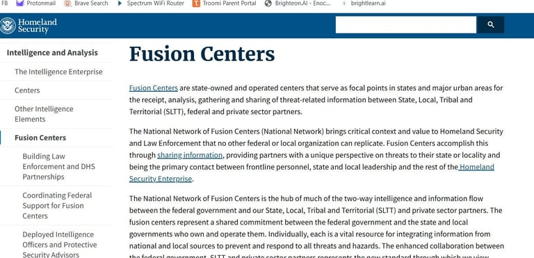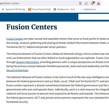 Fusion centers are operated by both state and federal governments. Created after 2001, as part of the Homeland Security Act, in order to "protect" the citizens during the War on Terrorism. Since then, the aggregation of live electronic surveillance being collected and shared nationwide has exponentially expanded: